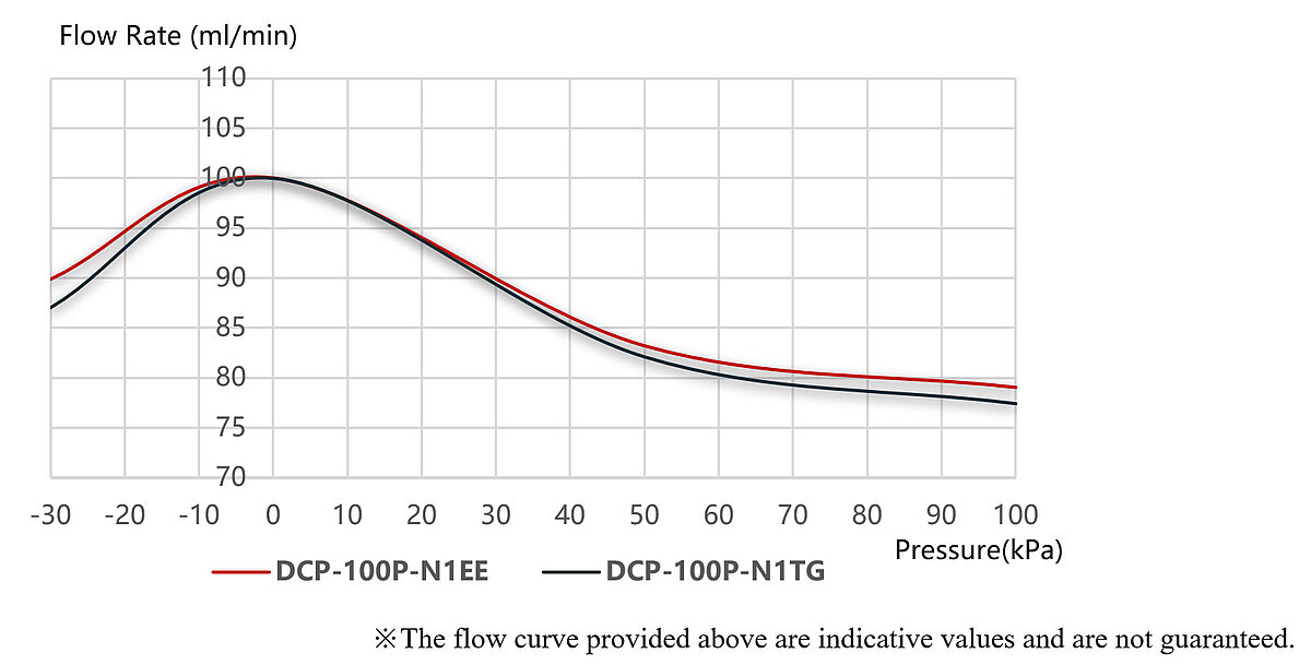 The DCP‑100 Series comprises compact diaphragm pumps with a standard flow rate of 100 mL/min and a pressure range from −300 to +1000 mbar. They are suited for applications where reliable pressure and vacuum performance is required within a minimal installation space.
