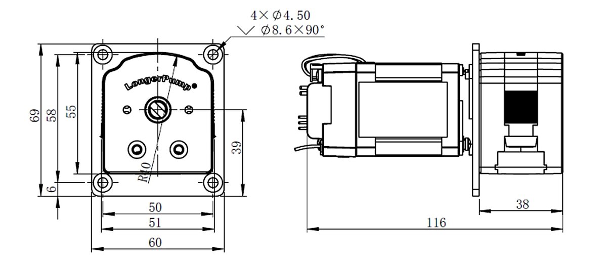- Pump head with single channel (KZ15‑14) or dual channels (KZ10‑24) made of POM or PVDF